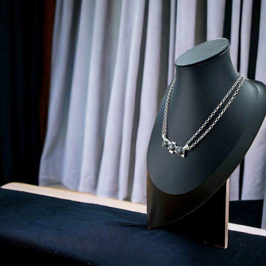 Handmade Argentium Silver Necklace, Pendant 3 Hematites, 2 strand Belcher chain